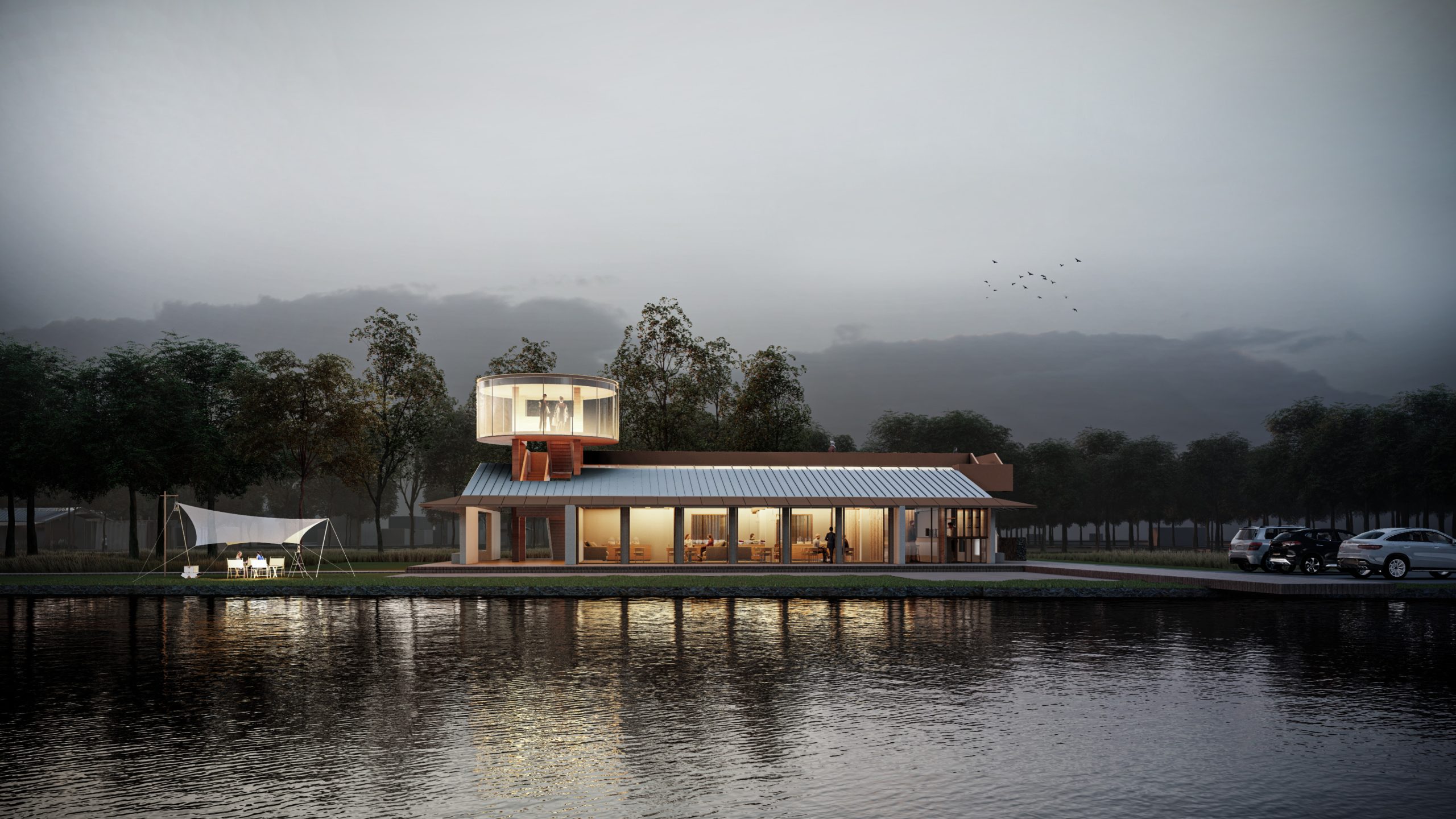 Renovation Concept: The original breeding farm is surrounded by trees on three sides and faces a lake, providing excellent natural conditions. Utilizing locally caught aquatic products and the theme of picking, we will create a Yuanjiadian agritainment based on the concept of “two residences and one garden.” The site, facing a large water area, is ideal for creating a viewpoint that offers panoramic views, enhancing the site’s advantages from another perspective. After cleaning and refurbishing the area on the east side of the building along the lake, it can be used as an outdoor camping space.