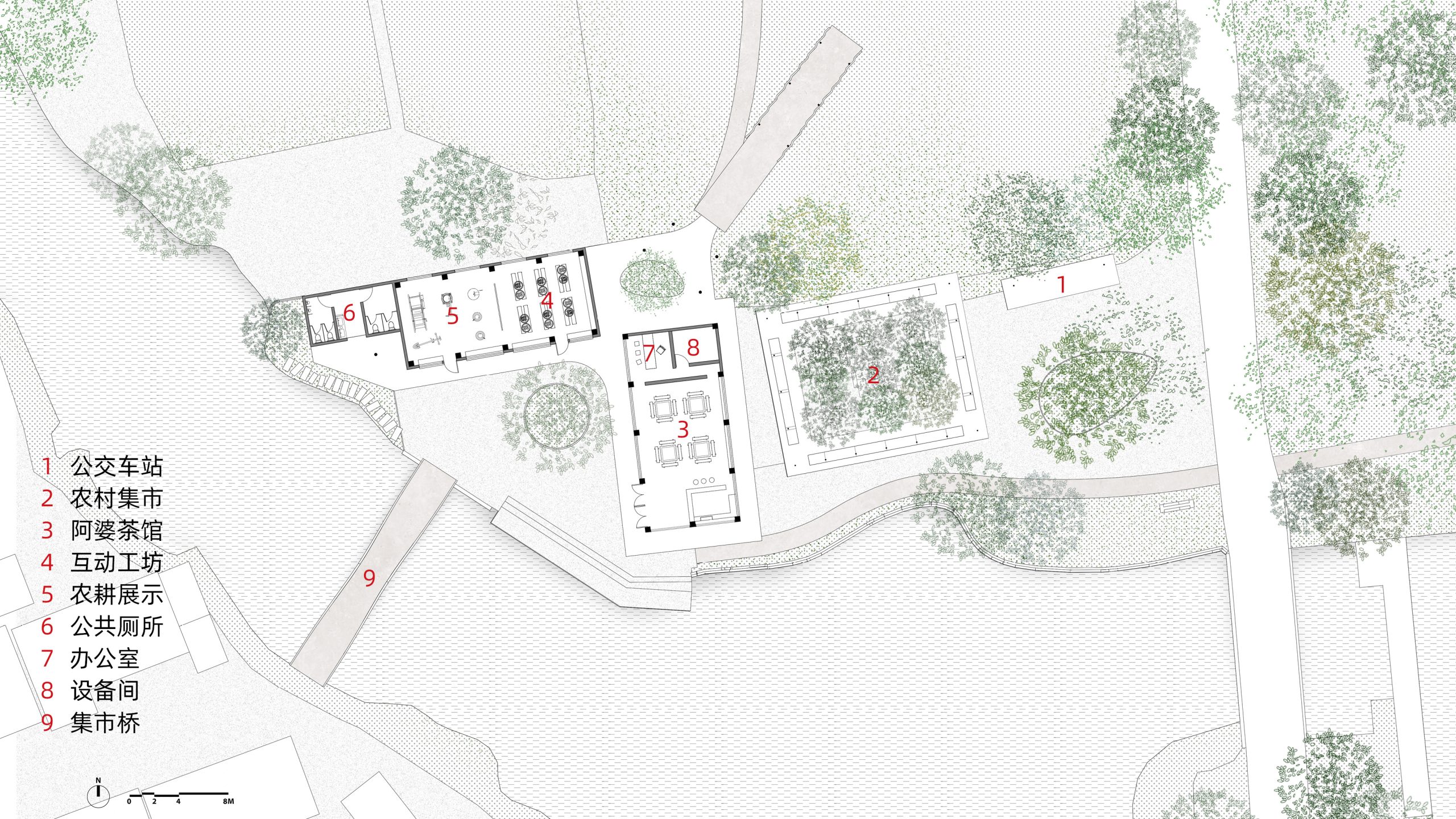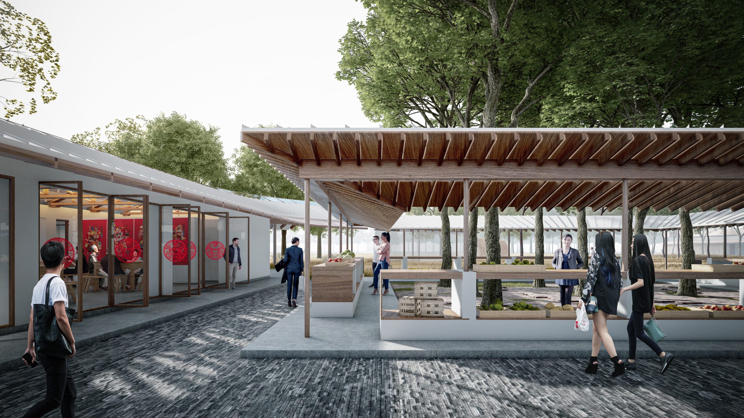 Renovated Functions: Yuanjiadian Rural Market, Pavilion for Rest, Grandma’s Tea House, Interactive Workshop, Agricultural Exhibition Hall
